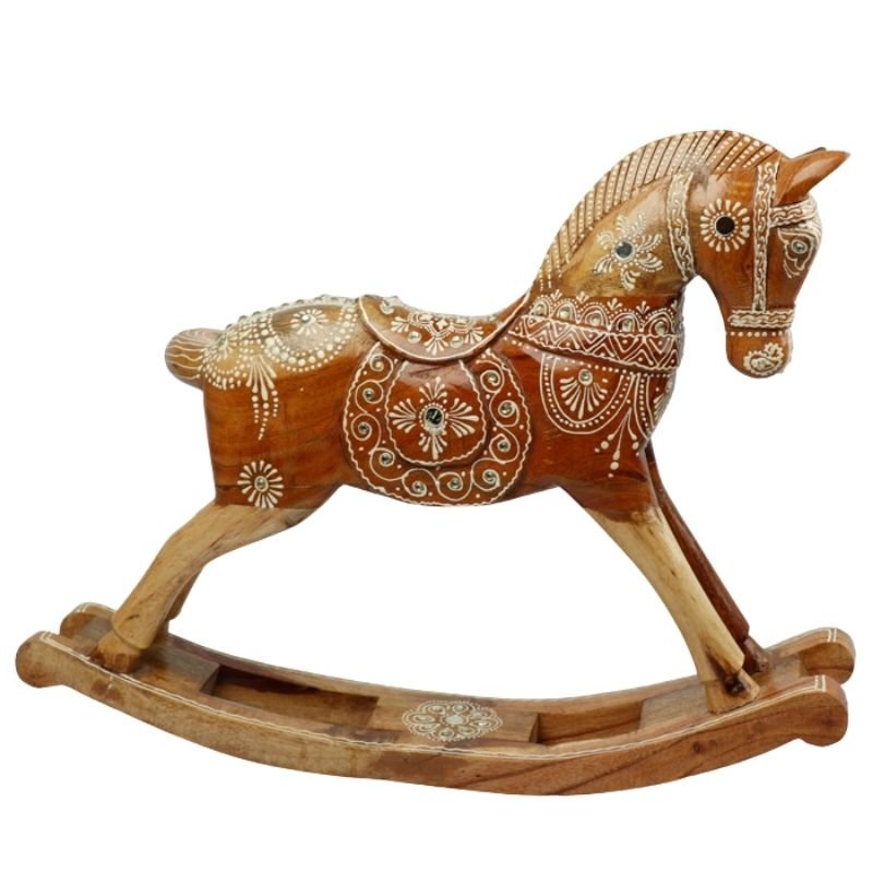 Meshilp Wooden Decorative Hand Embossed & Painted Rocking Horse