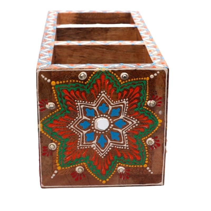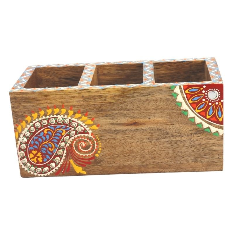 Meshilp Mango Wood hand Painted Knifes/ Spoon Holder